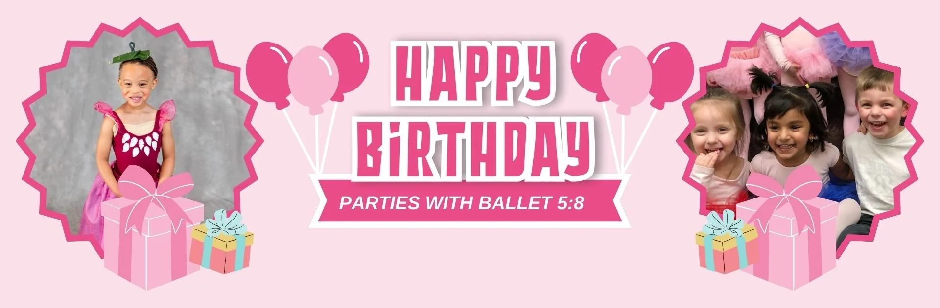 We want to make your child’s birthday a special day they will always remember. Enjoy a fun day at the Ballet 5:8 studios dancing and celebrating with friends!
