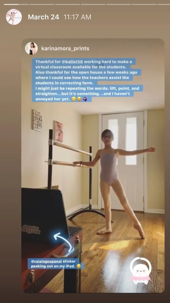 In the first 48 hours after receiving notice that students would not be able to come to the studios, Ballet 5:8 staff created over 100 instructional videos for their students so they would be able to continue to learn and dance while stuck at home. Being able to continue dancing online has provided a safe outlet for many of the students to stay active and be inspired. Both pre-recorded resources and live online classes are providing valuable community building, social interaction and a much needed break for weary parents. Many parents have commented on the resources being offered, including Gergana Khouchaba, of Orland Park, mother of a 6-year-old: “Thank you for the wonderful class, your efforts are incredible. We greatly appreciate all of your hard work!.”